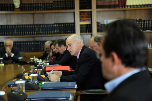 Β. Παπανδρέου: Χρειάζονται πολιτικές πρωτοβουλίες. Να αρθούμε στο ύψος των περιστάσεων πέρα από προσωρινά κομματικά οφέλη. Εθνική συνεννόηση ή εκλογές είπε λίγο μετά στο περιστύλιο της Βουλής.