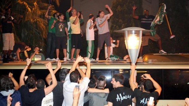 Αποθέωση με "σκούπες" από 3000 φίλους του Παναθηναϊκού (VIDEO)