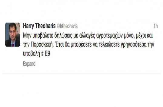 Με τα νεύρα και την υπομονή των πολιτών παίζει και πάλι το taxis net που κολλάει συνεχώς και χρειάζονται ώρες υπομονής για τη δήλωση του Ε9. Τώρα ο Γ.Γ. εσόδων παρακαλεί να μην μπαίνουν μέχρι στις 20 του μήνα οι πολίτες που έχουν να υποβάλλουν στοιχεία μόνο για αγροτεμάχια....» Πλήρης είδηση - 10:30