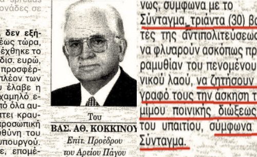 Ο κ. Κόκκινος, στο βαρυσήμαντο άρθρο του στην εφημερίδα «Αξία», καταθέτει τις αδιαμφισβήτητες νομικές γνώσεις του και εξηγεί τις ευθύνες του πρώην πρωθυπουργού για την οικονομική κρίση, ο οποίος, όπως τονίζει ο πρώην πρόεδρος του Αρείου Πάγου, μας οδήγησε προμελετημένα στην μέγγενη του Δ.Ν.Τ, αρνούμενος «εκτός των άλλων» και το δάνειο του Πούτιν των 20 ολόκληρων δις ευρώ.