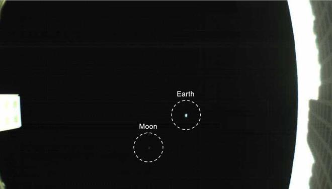 Κατά τη διαδικασία αυτή ενεργοποιήθηκαν και οι κάμερες τους και η κάμερα του ενός κάποια στιγμή τράβηξε μια φωτογραφία στο βάθος της οποίας διακρίνονταν δύο κουκκίδες οι οποίες δεν ήταν τίποτε άλλο από την Γη και την Σελήνη.