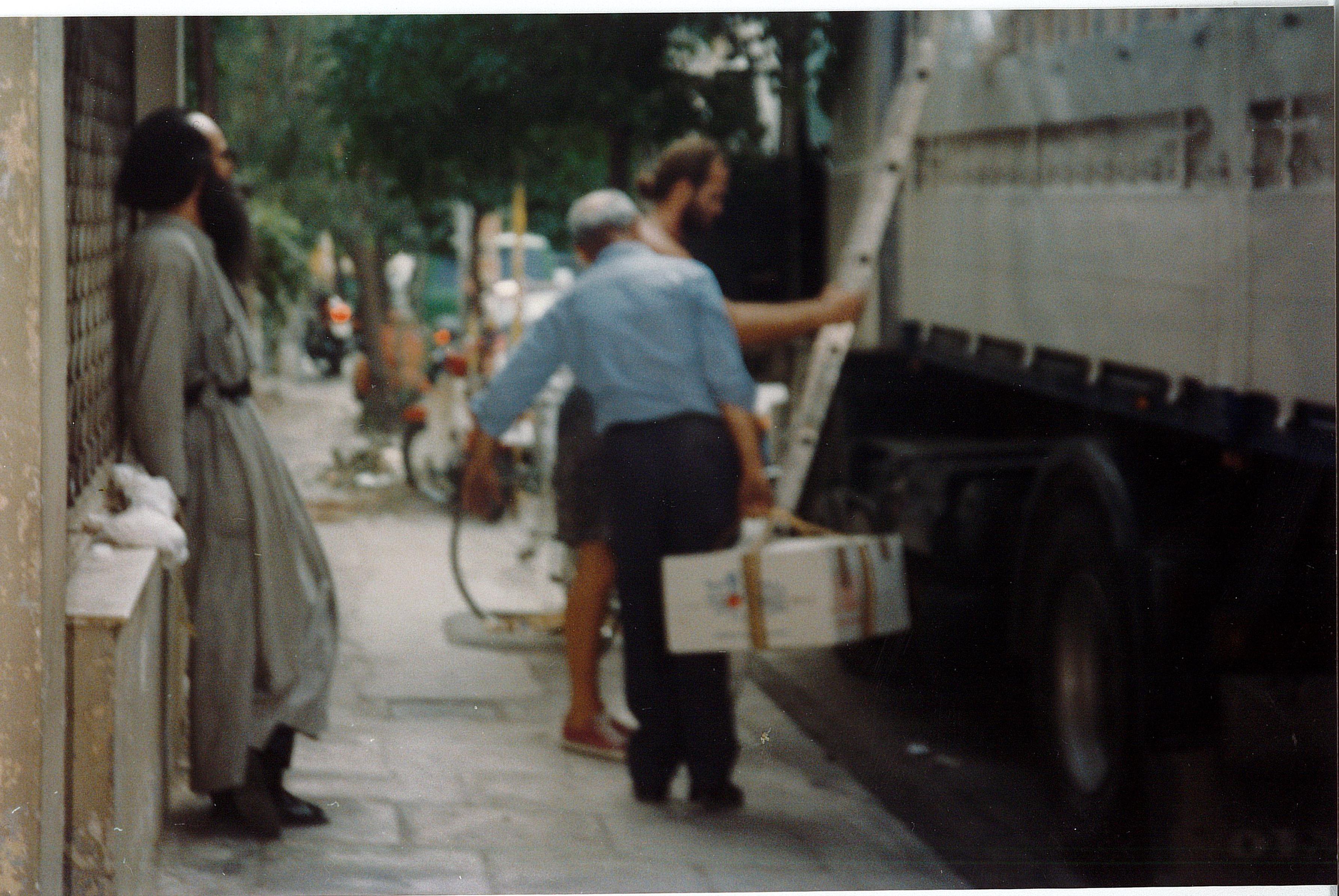 Ὁ ἀείμνηστος ἐθελοντής μας ΣΠΥΡΙΔΩΝ ΜΑΝΤΖΑΡΗΣ (8α) μεταφέρει τὴν οἰκοσκευὴ τοῦ π. Δαβίδ, σήμερα Ἐπισκόπου Κρούσεβατς Σερβίας