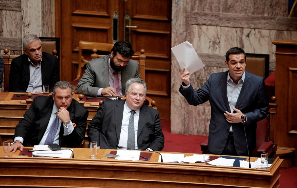 Σε βαθιά πολιτική κρίση βρίσκεται τα τελευταία εικοσιτετράωρα η κυβέρνηση μετά την απομάκρυνση του υπουργού Εξωτερικών Νίκου Κοτζιά - ο οποίος ήταν ο εμπνευστής της συμφωνίας των Πρεσπών - και ο οποίος παραιτήθηκε γιατί όπως λέει δεν τον στήριξε ο πρωθυπουργός στην αντιπαράθεσή του με τον Πάνο Καμμένο.