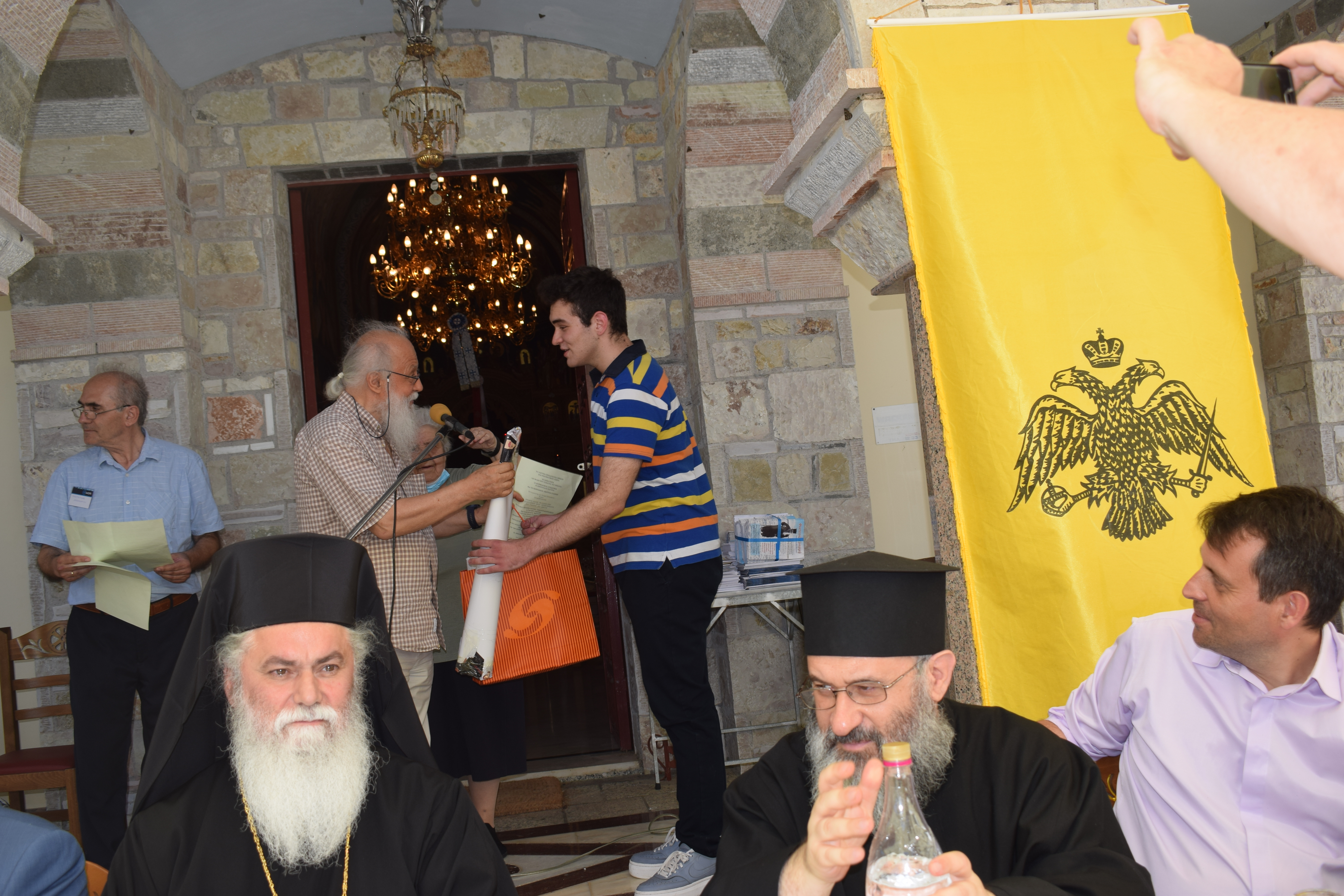 Τὴν βράβευσιν παρέδωσε εἰς τὸν κ. Χρυσοβαλάντην – Γεώργιον Κουγιαγκὰν ὁ ἐμπνευσμένος Ἁγιογράφος κ. Κων/νος Γιωτάκης.